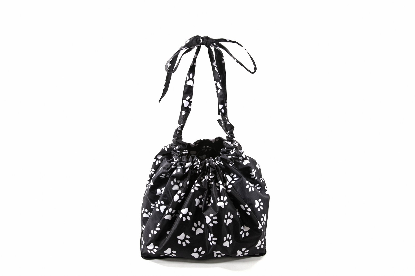 This awesome Dog Paws Bicycle basket liner is the ultimate cruiser bike accessory. This original bike basket liner is all weather friendly, reversible and crafted in nylon rip-stop material with durable sturdy draw straps to convert easily into a generously sized market bag, gym bag, yoga bag, beach bag, tote bag! Featuring two deep pockets (water bottle size) Also folds up easily into a compatible zippered pouch.  Easy to take in and out of bike basket. Designed in Huntington Beach, California. Matching Bicycle seat cover available!