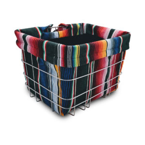 This awesome Mexican Serape Blanket Bike Basket Cover, Handmade Beach Cruiser Basket Bag,Stylish Tote in one liner is the ultimate cruiser bike accessory. This original bike basket liner is  a generously sized market bag, gym bag, yoga bag, beach bag, tote bag!    Easy to take in and out of bike basket. Designed and Made in Huntington Beach, California.